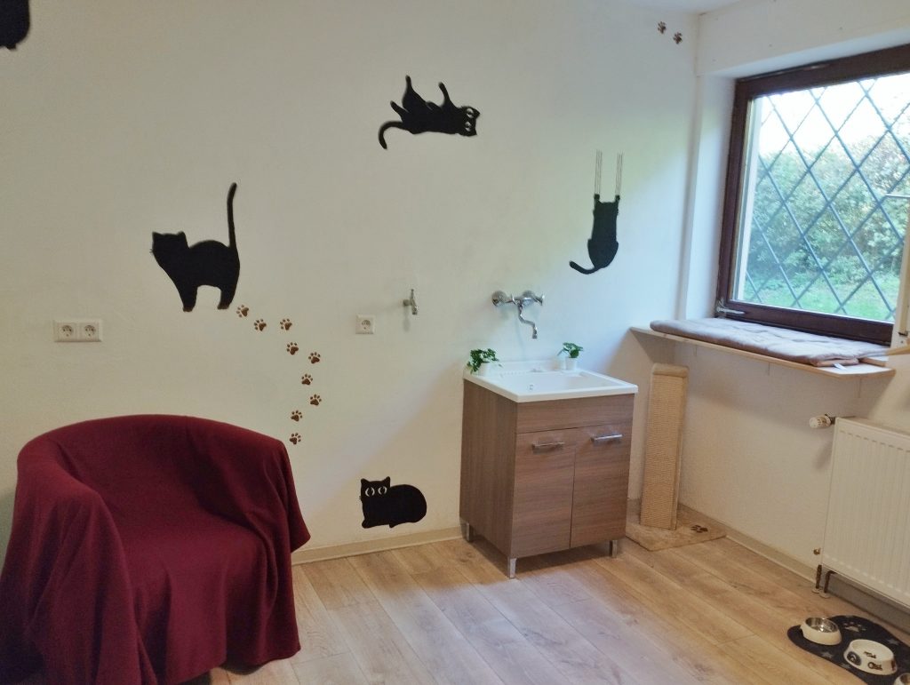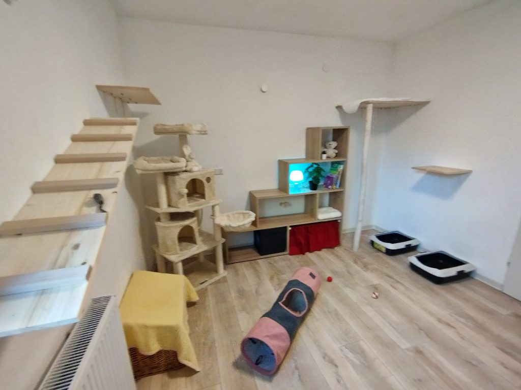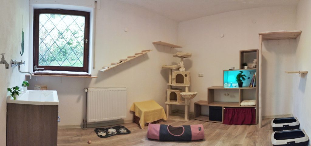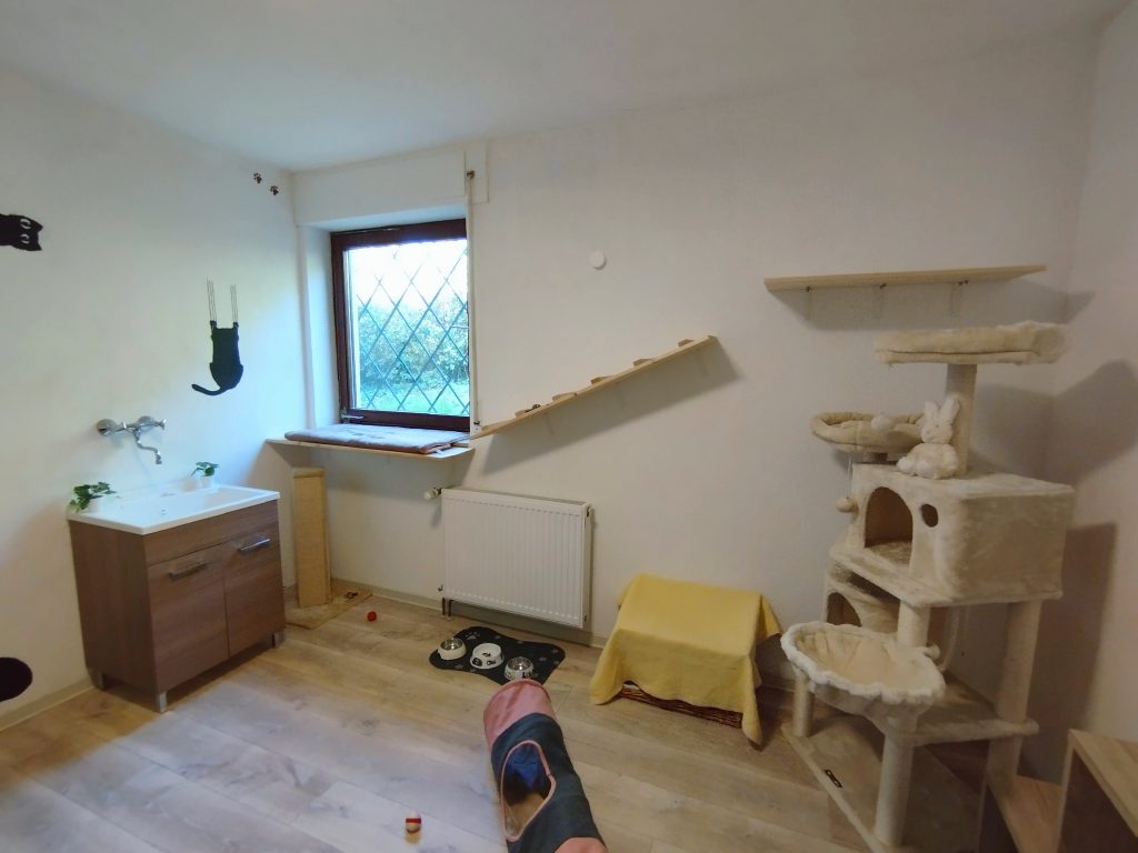 Zimmer 2 Zwischen Zimmer 1 und Zimmer 2 gibt es einen Verbindungstunnel indoor, so dass die Katze/n auf ca. 26 qm viel Platz haben.